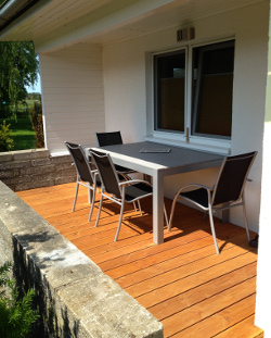 Der Bungalow wurde in den Jahren 2012 und 2013 saniert und renoviert. Alle Räume erstrahlen im neuen Glanz, der Terrassenbereich wurde durch eine Holzterrasse aufgewertet. Eine Einbauküche zur Selbstverpflegung beinhaltet alles, was man benötigt (Elektro-Herd, Mikrowelle, Kühlschrank, Spüle, Kaffeemaschine, Wasserkocher, Toaster etc.)